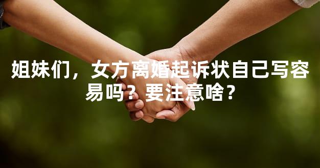 姐妹们,女方离婚起诉状自己写容易吗?要注意啥?