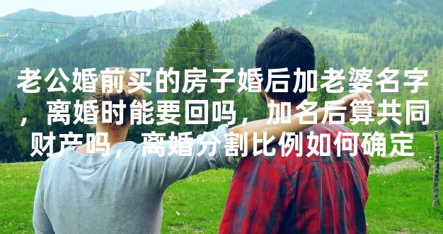 老公婚前买的房子婚后加老婆名字,离婚时能要回吗,加名后算共同财产吗,离婚分割比例如何确定